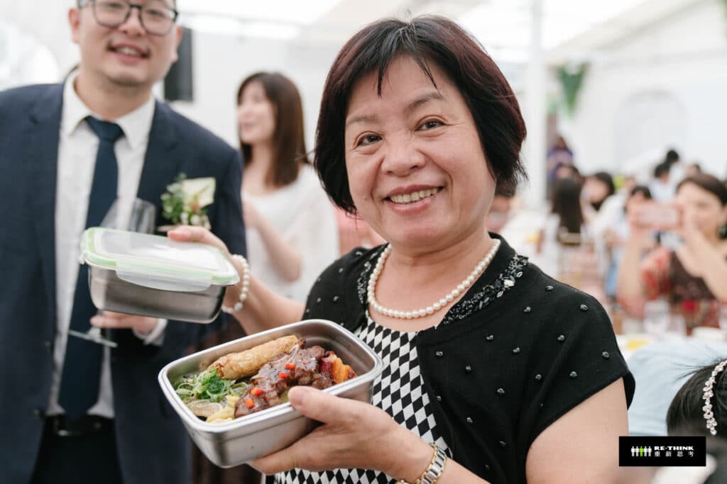 兩週前,恰逢 RE-THINK 的夥伴 Sandra 舉辦婚宴,現場超過 200 名長輩、親友,一起挑戰這場「重新思考」的婚禮,盡可能減少不必要的垃圾!一場婚禮,動輒數十到數百位賓客參加,從前期的喜帖通知、人數統計、喜餅選擇、菜色決定;現場的收禮台、佈置設計、宴會流程、送客等,細節繁瑣且環環相扣。