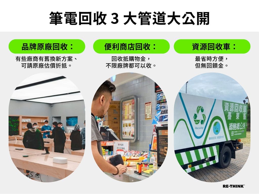 如果電腦、筆電還能使用,可以考慮捐贈或轉售,讓它繼續被使用更環保。各類電腦資訊用品推陳出新,下次看到新款別急著掏錢,符合使用需求才實際!畢竟好好回收固然重要,但源頭減量更是關鍵。