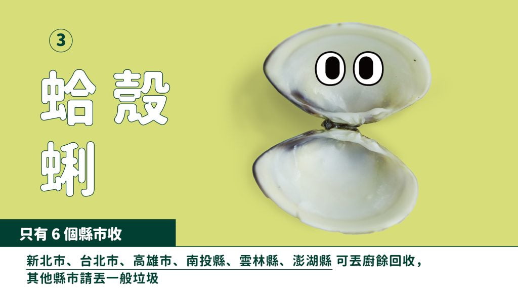 蛤蜊殼:多數堆肥廚餘回收縣市皆有收