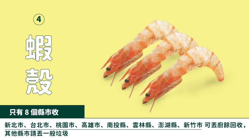 蝦殼:相較其他海鮮殼軟,是可以丟廚餘回收