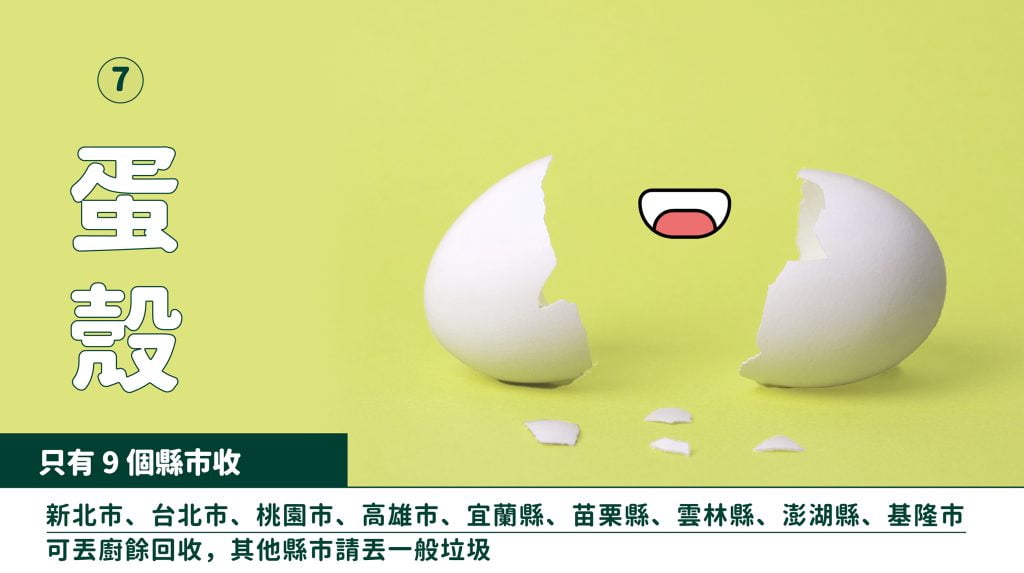 蛋殼:有堆肥廚餘回收的地區,幾乎都有收