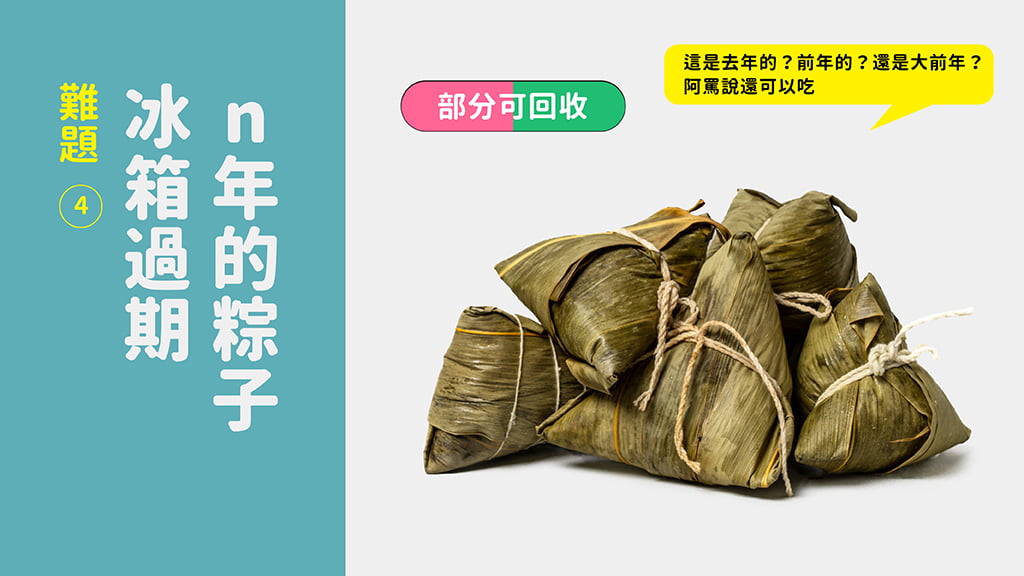 粽子的組成相對單純,將棉繩與粽葉拿掉後可以直接丟入熟廚餘類!(如果要吃的話⋯⋯食安請自負唷)