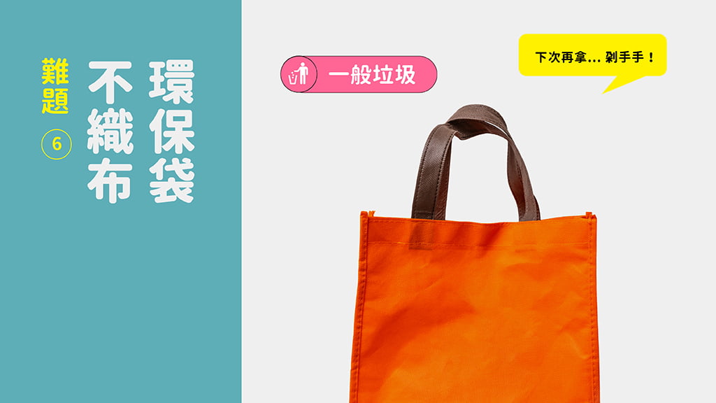 不織布袋子的組成材質為塑膠,久了將脆化分解變成你我最不願在海灘看到的塑膠微粒⋯⋯而常見的贈品多半具有塑膠包裝與複合材質,最後還是只有落入一般垃圾被焚化的命運。