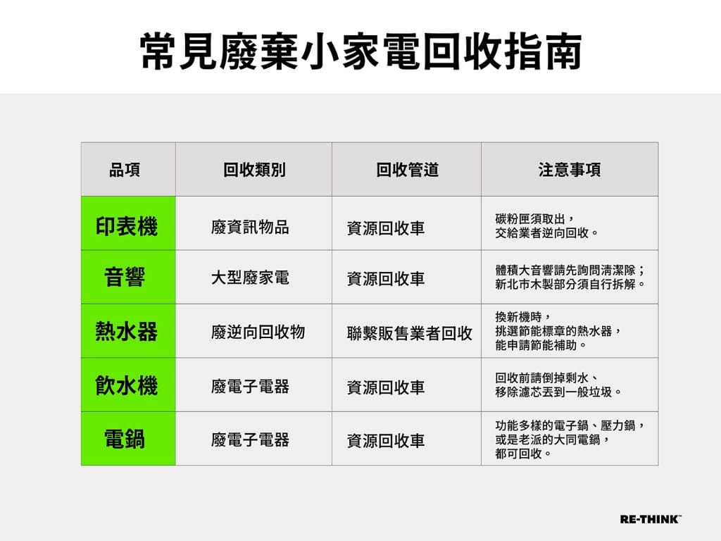 這篇文章整理了廢棄小家電回收的正確作法,幫助你快速理解常見如印表機、電鍋、飲水機回收分類方式。文末也附上讓廢棄小家電重生的方法,馬上來看看。